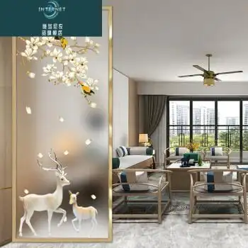 隔断客厅现代入户玄关墙新中式轻奢雕花装饰 兰花鹿(艺术玻璃一平米)