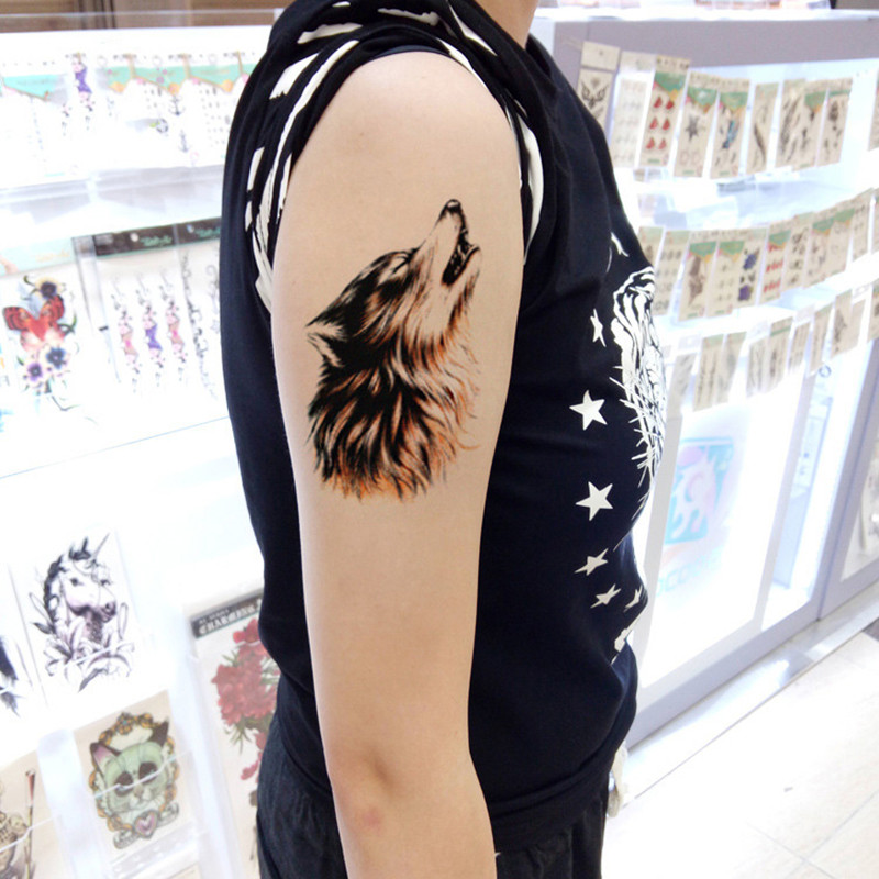 纹身贴防水男女手臂胸前滴血狼头持久仿真刺青花臂大图贴纸 备注编号