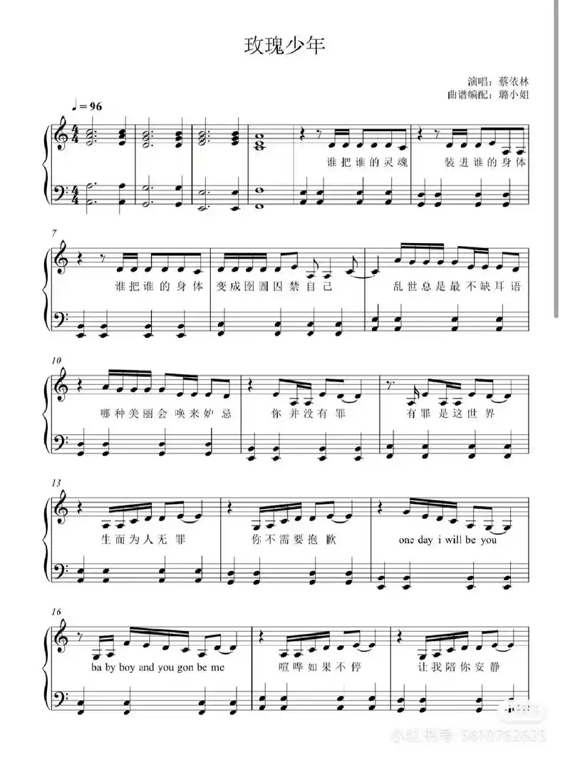 玫瑰少年c调版#钢琴谱分享 #巨鹿theone钢琴教室 - 抖音