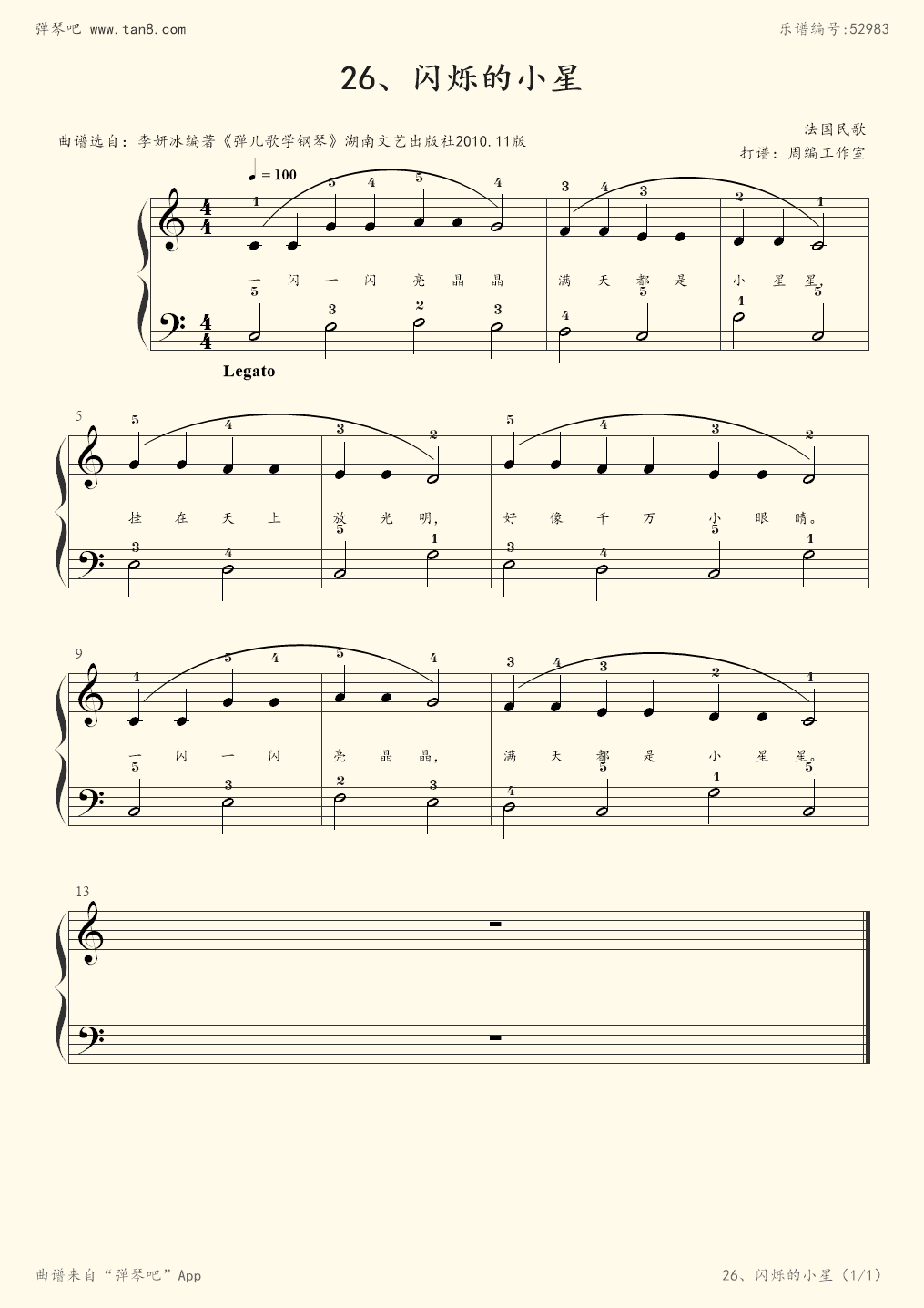 《26,闪烁的小星[法国民歌]-z0126,钢琴谱》李妍冰(五线谱 钢琴曲