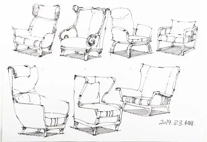 手绘学习方案,4 手绘组合家具线稿的画法,技.