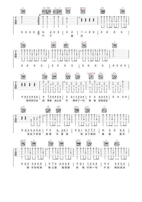 韩安旭《多幸运》吉他谱f调