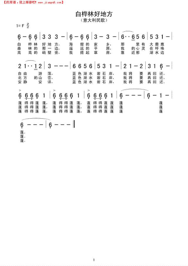 简谱白桦林_白桦林好地方简谱