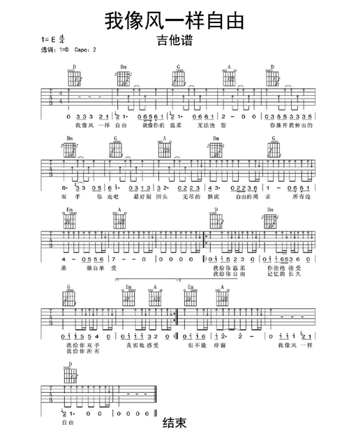 我像风一样自由吉他谱乐谱