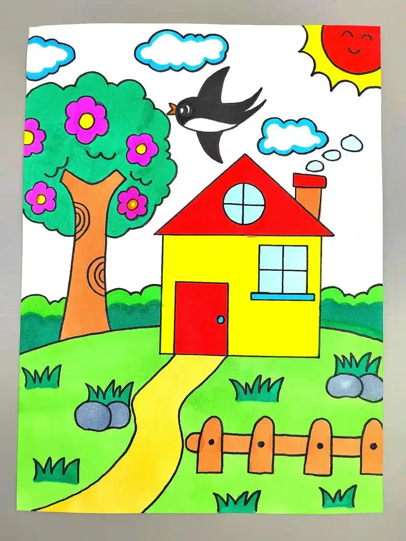 简单又好看的春天主题创意画来咯,一看就会,幼儿园小朋友也能独 - 抖
