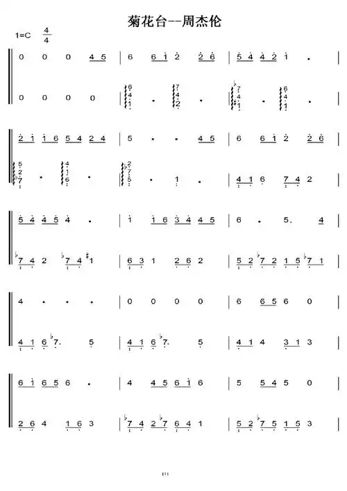 菊花台--周杰伦-通俗曲谱- 曲谱 简谱 歌谱 琴谱 总谱 音乐教程