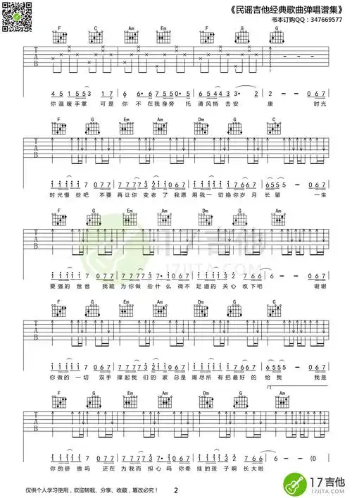 父亲吉他谱 - 六线谱-尤克里里谱-ukulele谱 - 升诚吉他网