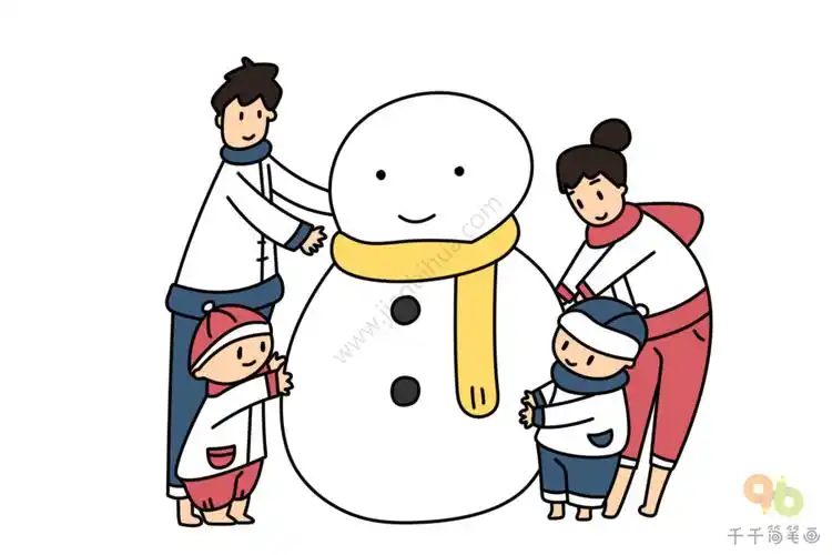 堆雪人的一家人简笔画