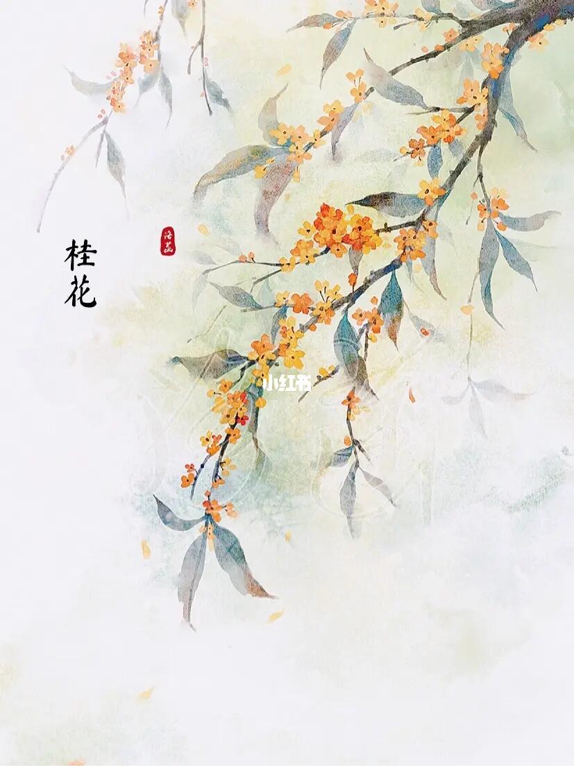 手绘秋日的桂花,金桂飘香,绘一把折扇秋意浓#手绘#水彩超话