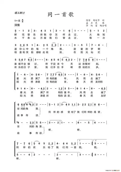 同一首歌 歌谱简谱网