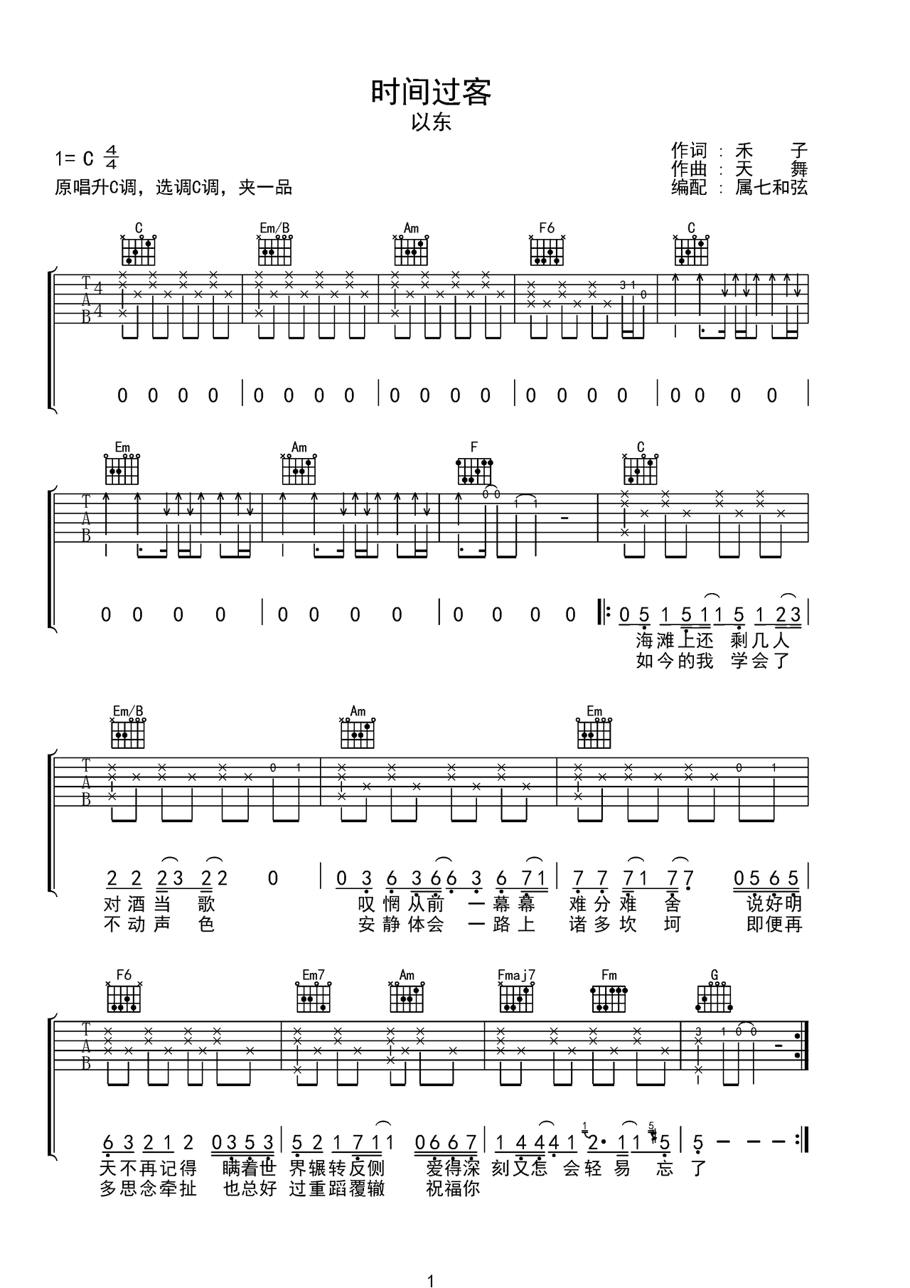 时间的过客吉他谱名决c调原版弹唱六线谱高清图片谱