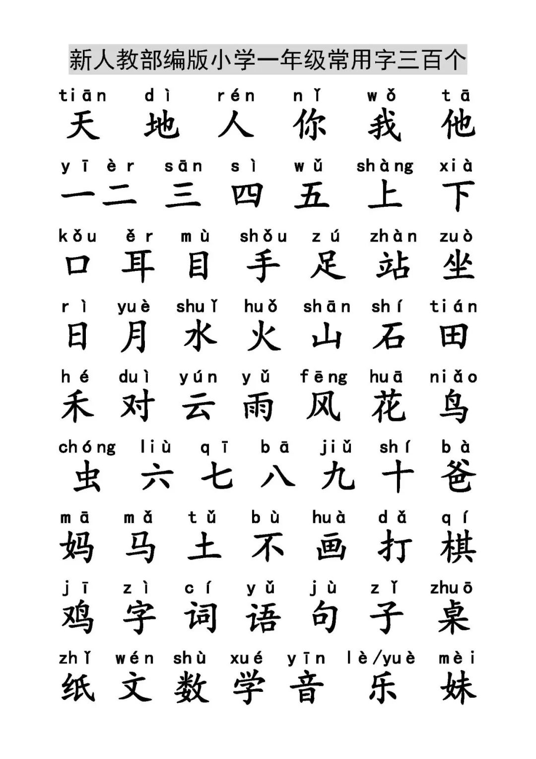 小学一年级必须认识的300个汉字赶紧收藏