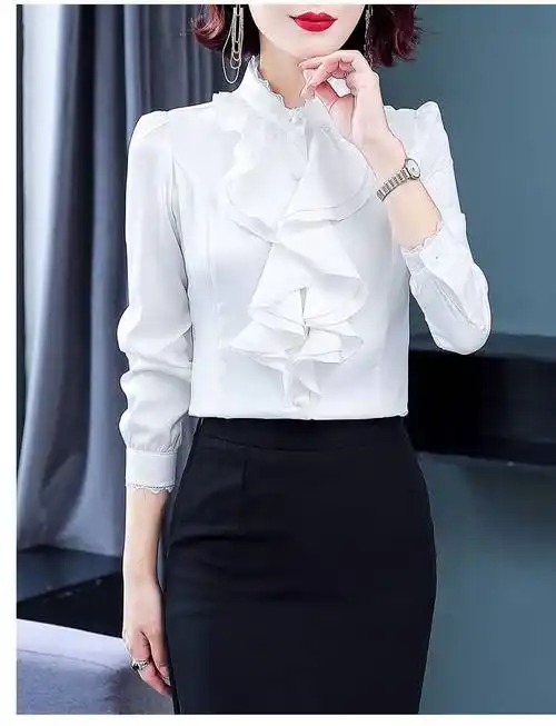 女式衬衫-2018ol通勤职业女装缎面衬衣百搭上衣显瘦立领长袖衬衫-女式