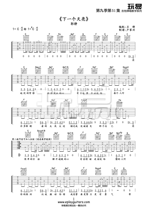 下一个天亮吉他谱-颜人中版-c调指法编配1