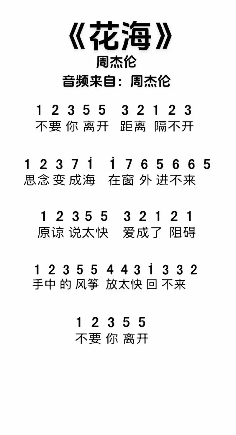 《花海》简谱,筒音作5.一首以"爱"押韵的歌,送给陪伴我一路