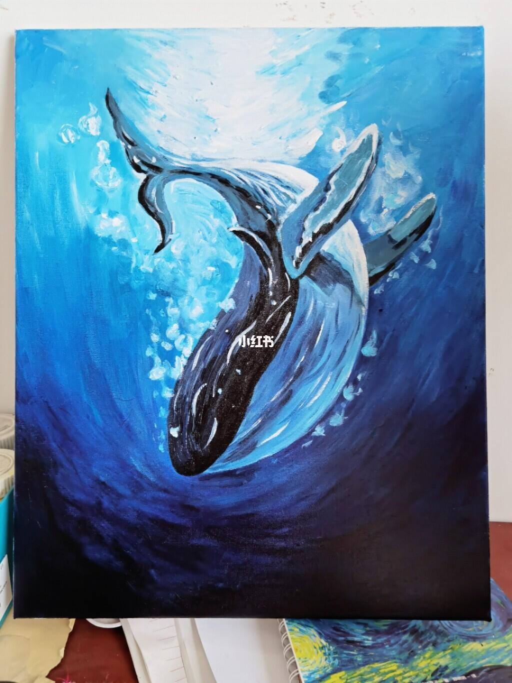 手绘丙烯画鲸鱼