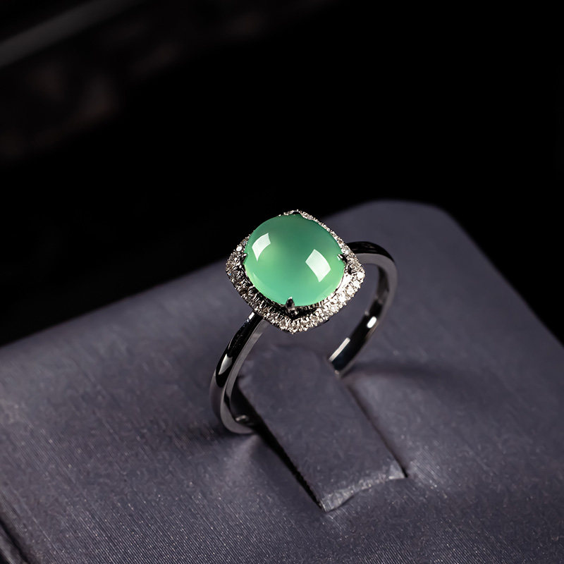 18k镶嵌翡翠戒指蛋面玉石指环女款圆形戒面饰品带证书送女朋友七夕