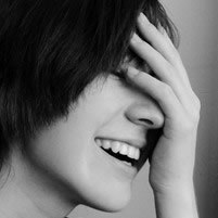 类似面具般的黑白色,用手遮着眼睛在微笑(冷笑,无奈笑那种,有点像女的