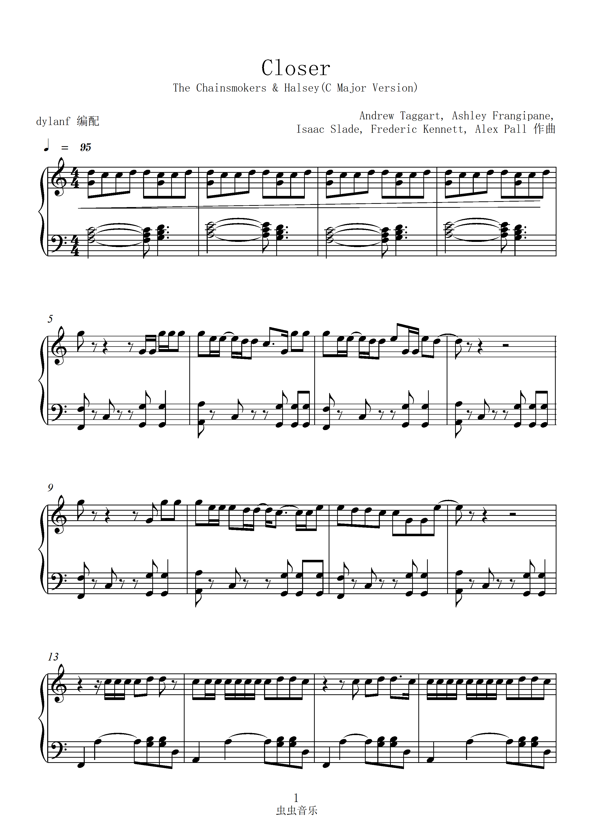 closer钢琴谱_ab调__钢琴视频_原版钢琴谱_虫虫吉他|钢琴谱|吉他谱