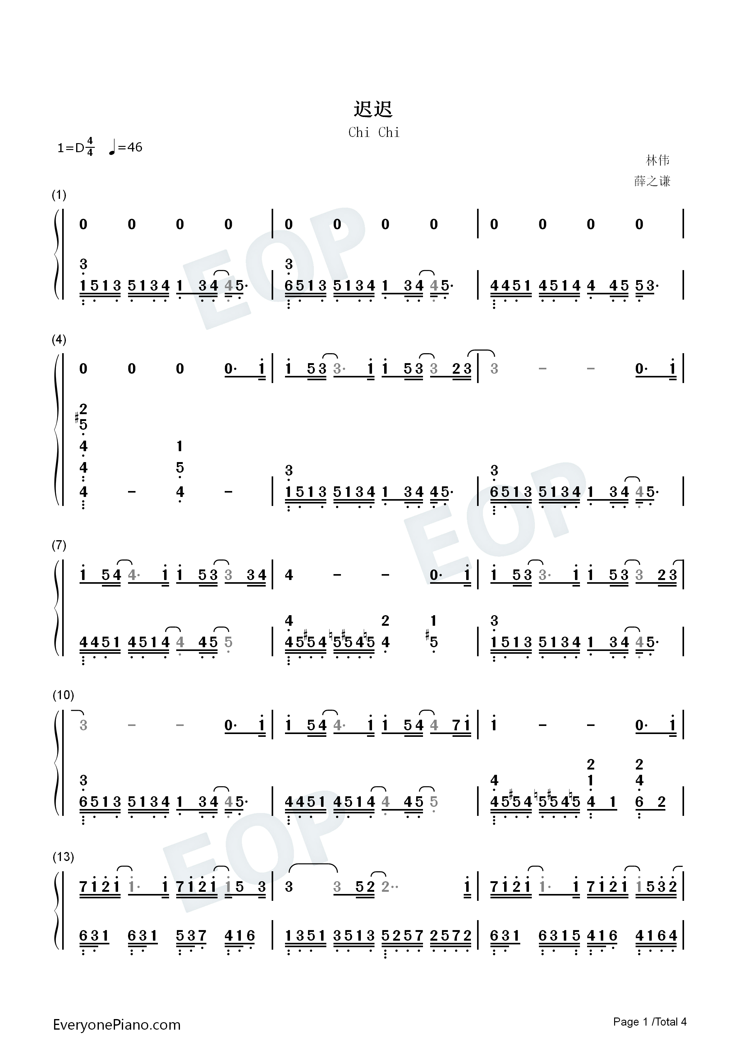 哑巴简谱-薛之谦演唱-薛之谦,汪苏泷/薛之谦,汪苏泷词曲1