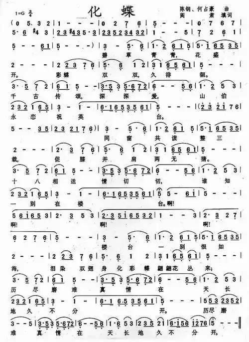 梁祝化蝶简谱-郑绪岚演唱-作曲:何占豪,陈刚词曲1