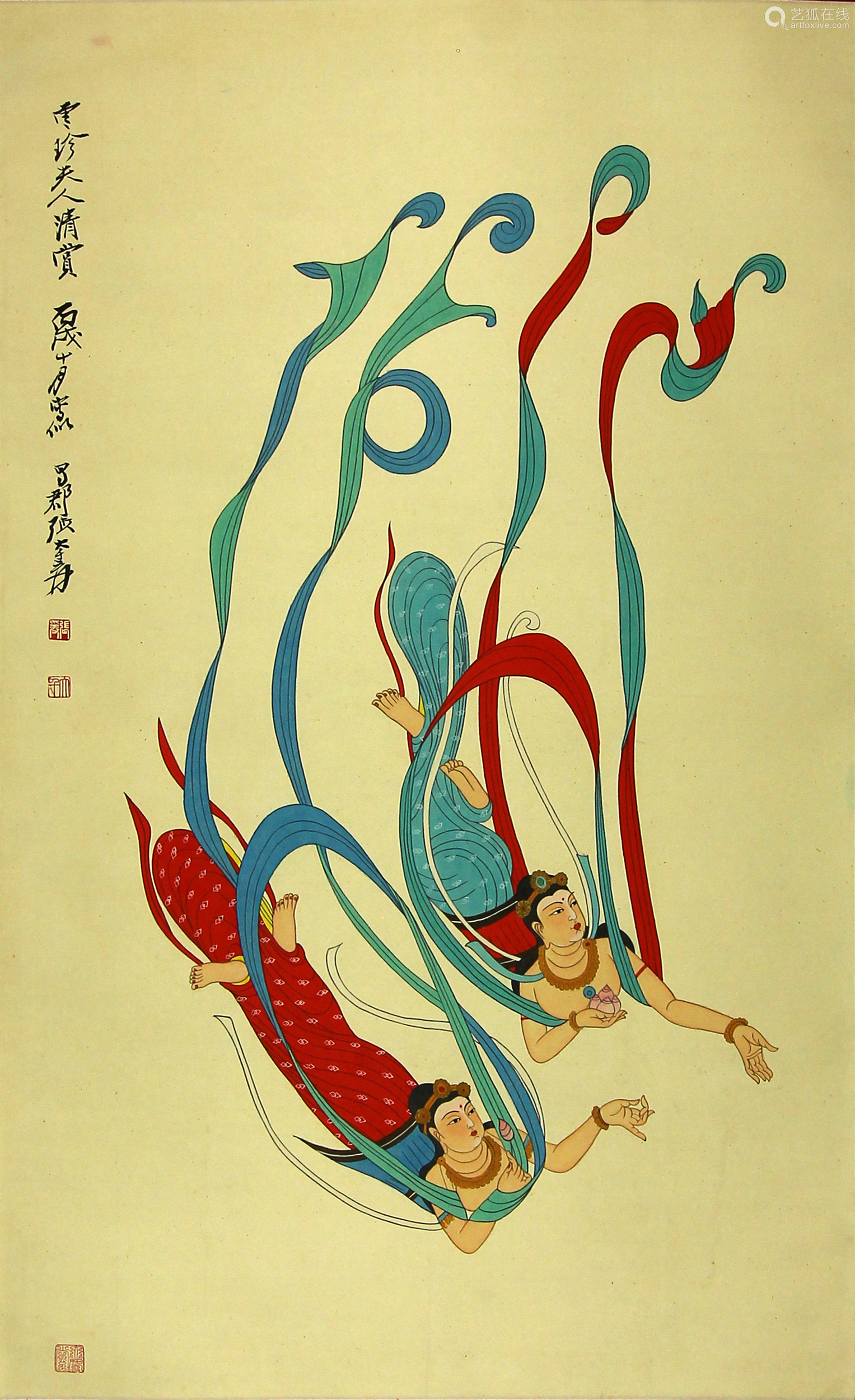 张大千 近现代 飞天神女 绢本设色 立轴-【成交 价格 图片】