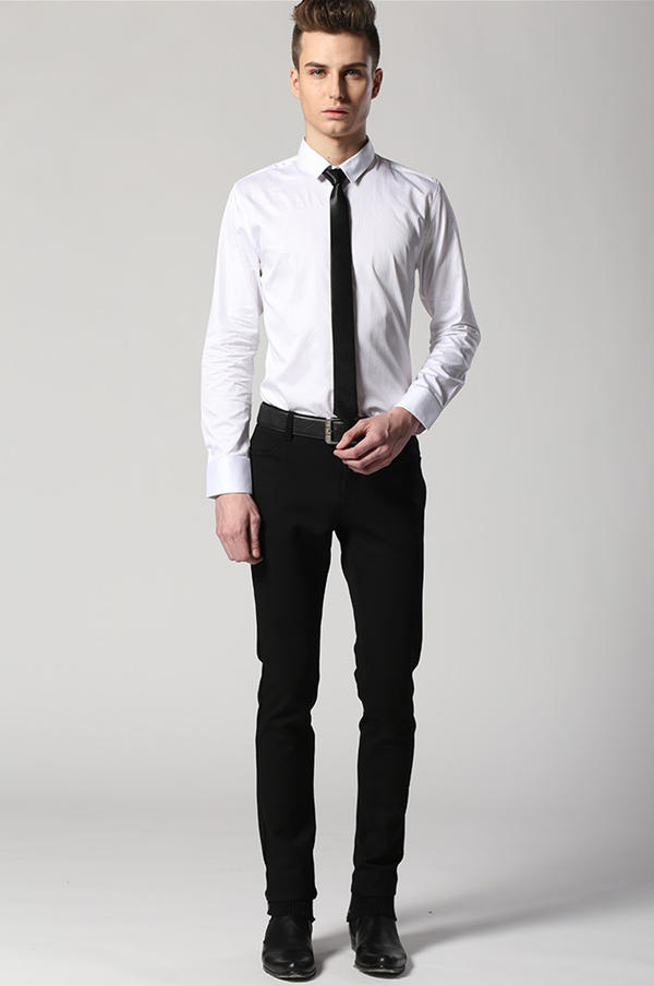 由于传统行业的职业及场合需求,白色衬衫搭配黑色西裤基本