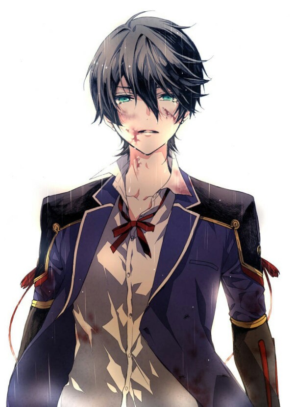 黑暗系动漫男生图片,要有背景,人物最好是黑头发蓝眼睛,当然有血更好