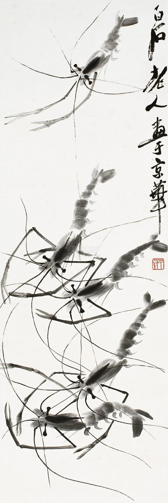 齐白石墨虾图在近现代的画家中,在杰出的艺术大师齐