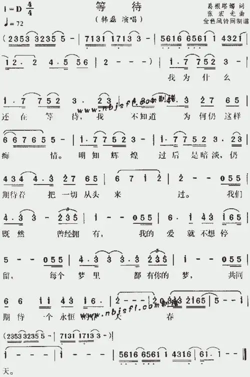 等待简谱-韩磊演唱-孙世彦曲谱简谱 - 曲谱歌词网