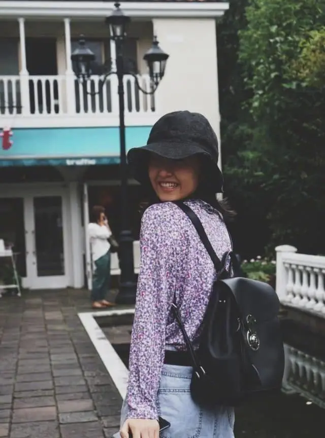 原创张子枫妹妹式学生装蓝裙穿出日系风格却被身旁的包包抢了镜