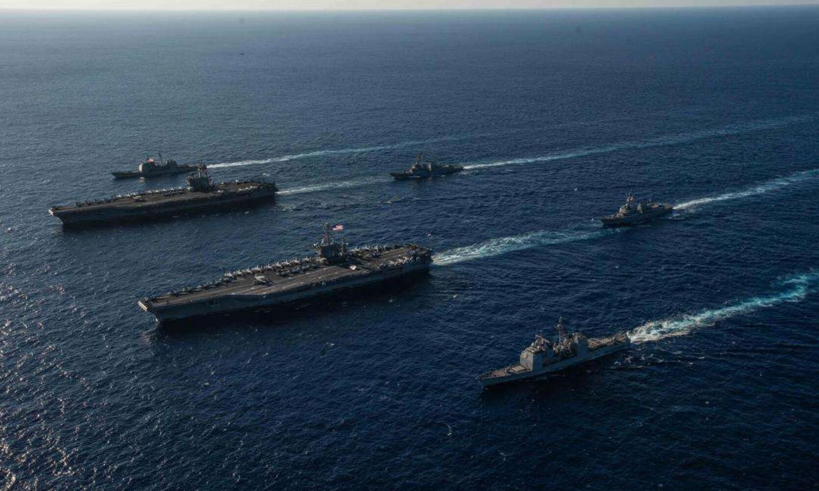 美军在菲律宾海秀肌肉 双航母编队航行画面曝光
