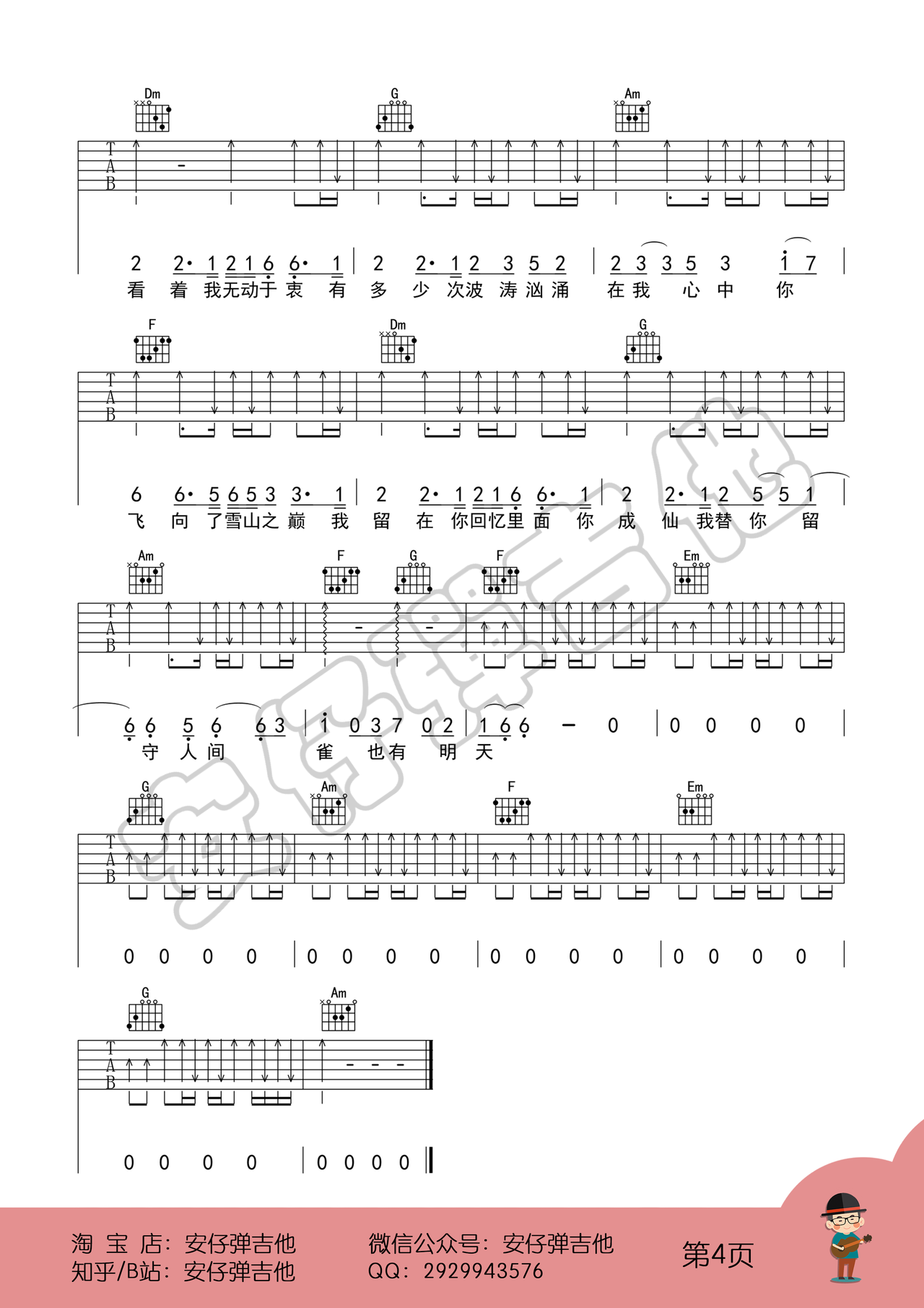 大益吉他李荣浩《麻雀》吉他弹唱谱高清pdf格式.jcx