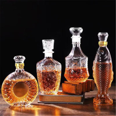轻奢高端水晶玻璃洋酒瓶家用带盖全密封威士忌白酒存储瓶药酒瓶酒樽