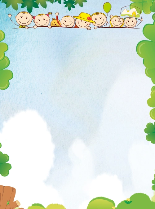 手绘卡通儿童边框早教幼儿园招生蓝色背景海报
