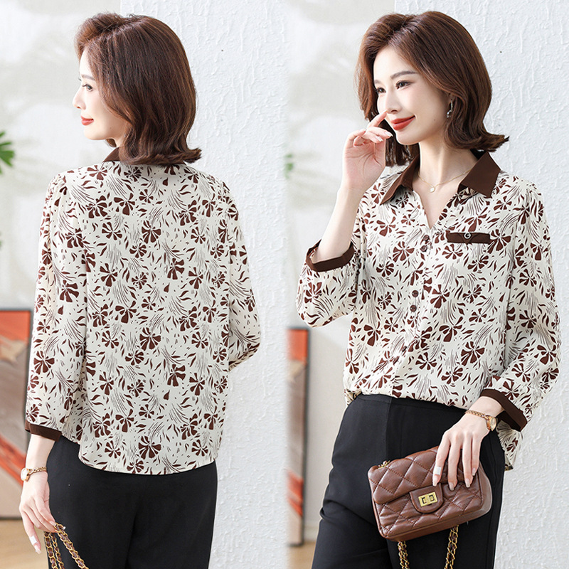 2019时尚妈妈装花衬衫木耳边春装中老年女装九分袖大码春老人衣服