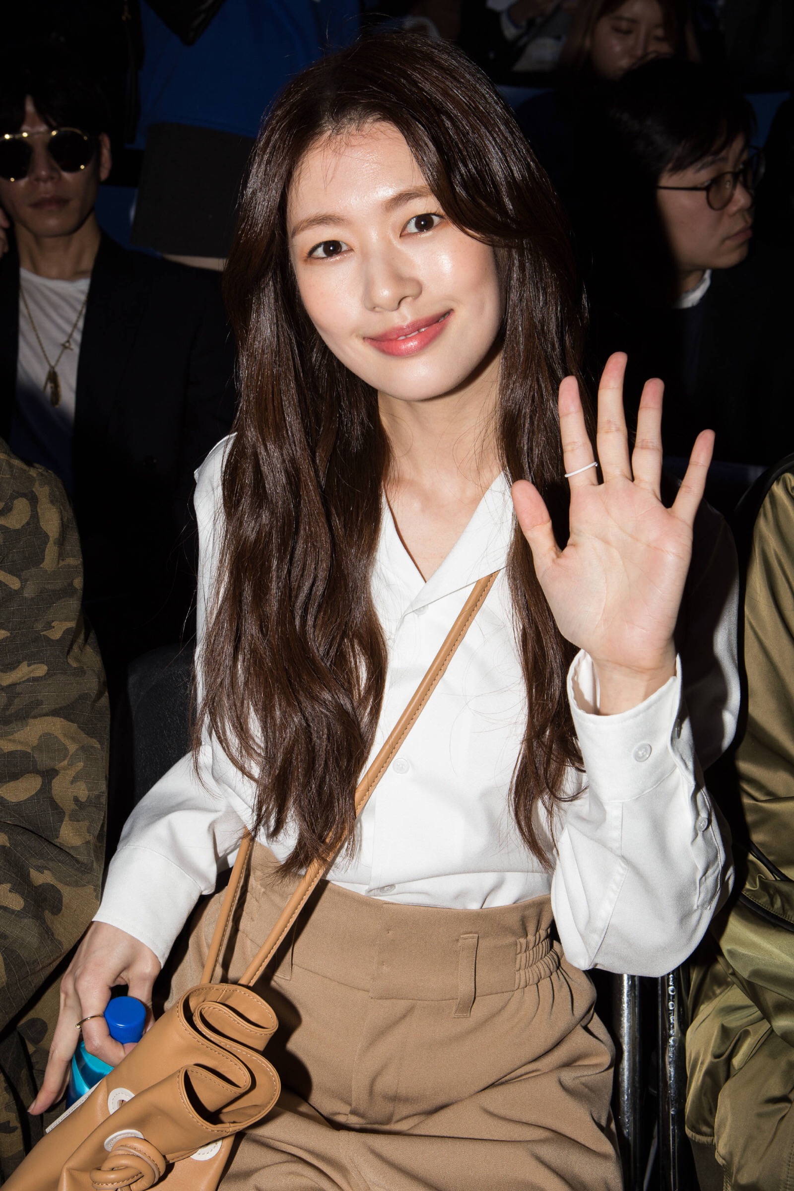 韩国女星郑素敏现身,穿白色泡泡袖衬衣牛仔裤,清纯可爱