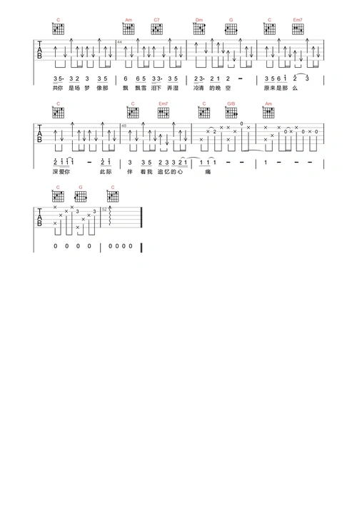 梁玉莹《飘雪》吉他谱-《飘雪》g调高清原版六线谱