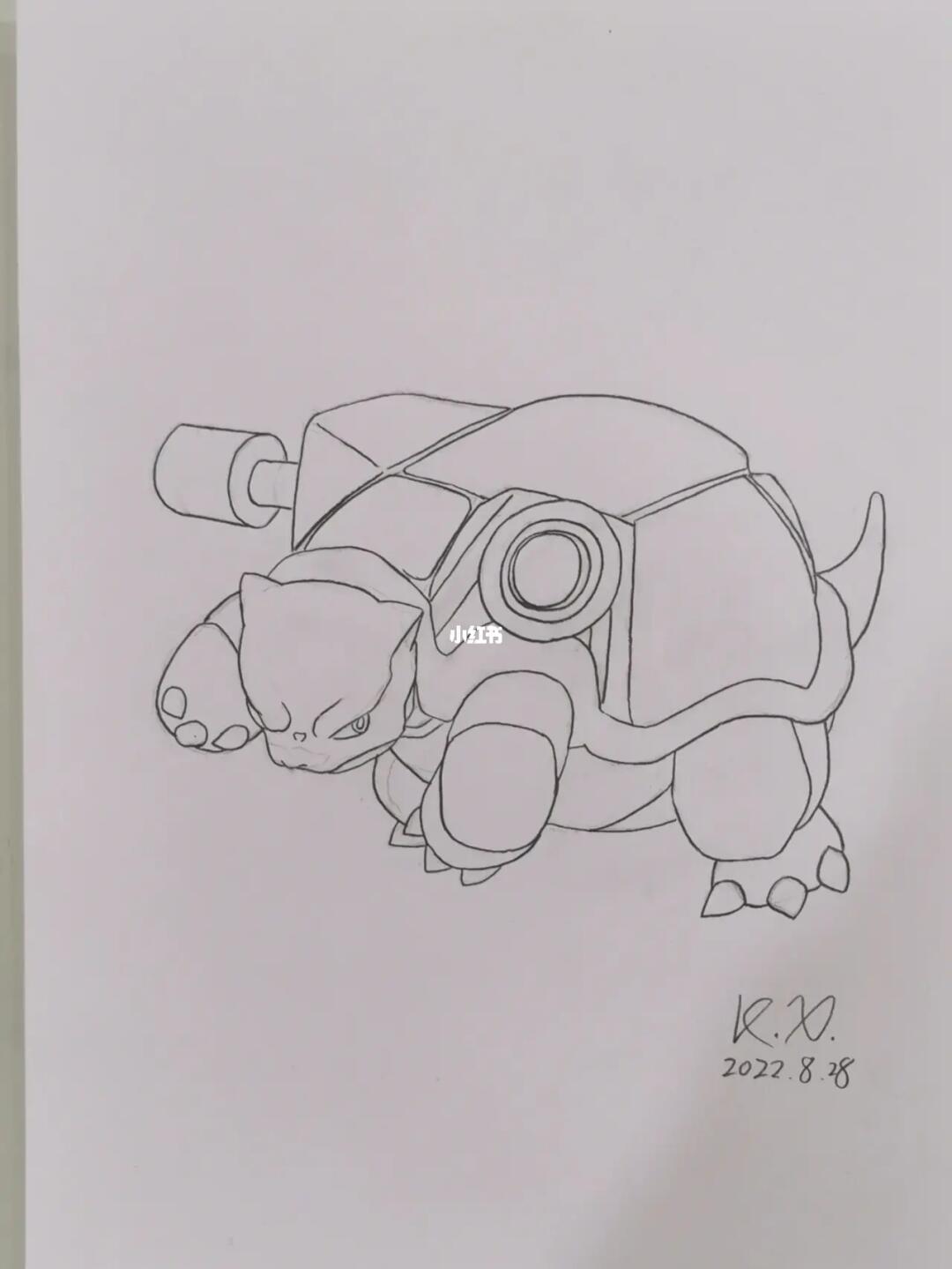 画了一只水箭龟,怎么炮口对着我呀……#线稿 #绘画临摹 #零基础学