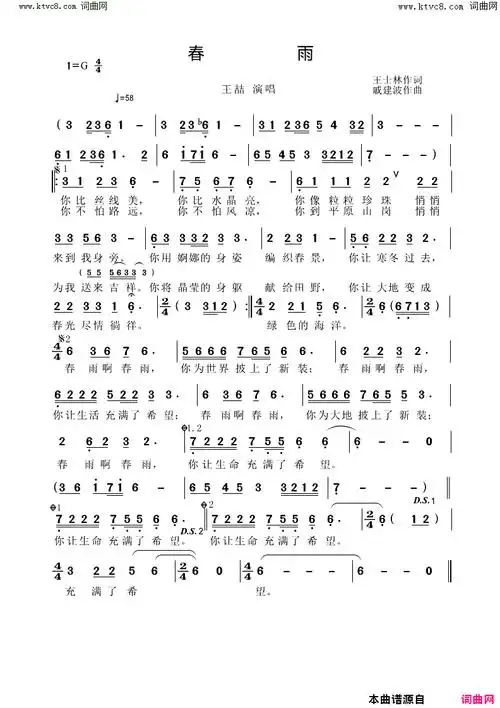 春雨 歌谱 简谱