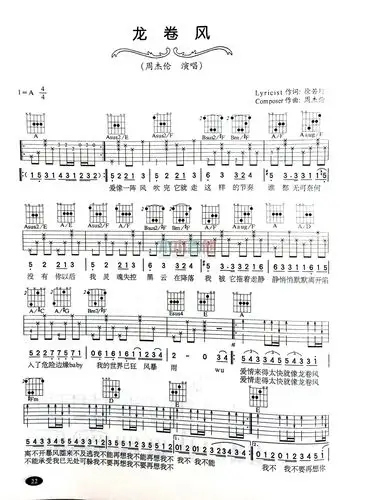 龙卷风-周杰伦,g调和弦原版编配a调六线吉他谱-虫虫吉他谱免费下载
