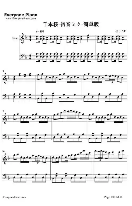 千本樱钢琴谱-钢琴原版-初音未来1