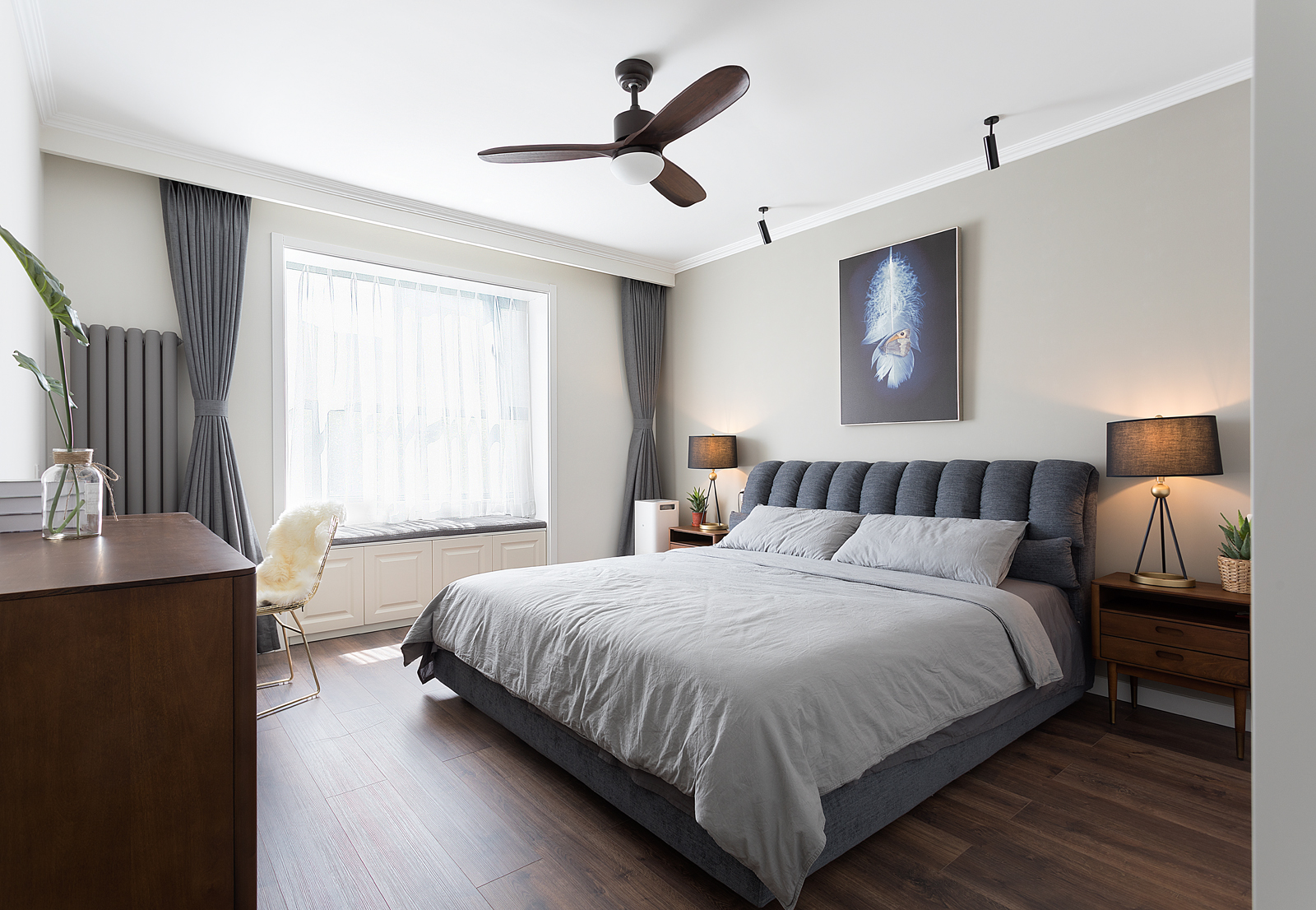 现代北欧风装修风格案例卧室窗帘现代简约卧室设计图片赏析