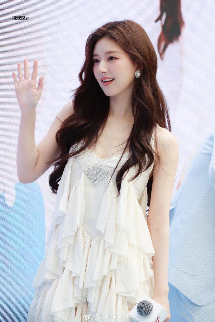 甜美可爱,清纯妩媚的#赵露思# 一袭白色亮片长裙,肤白貌美的容颜,窈窕