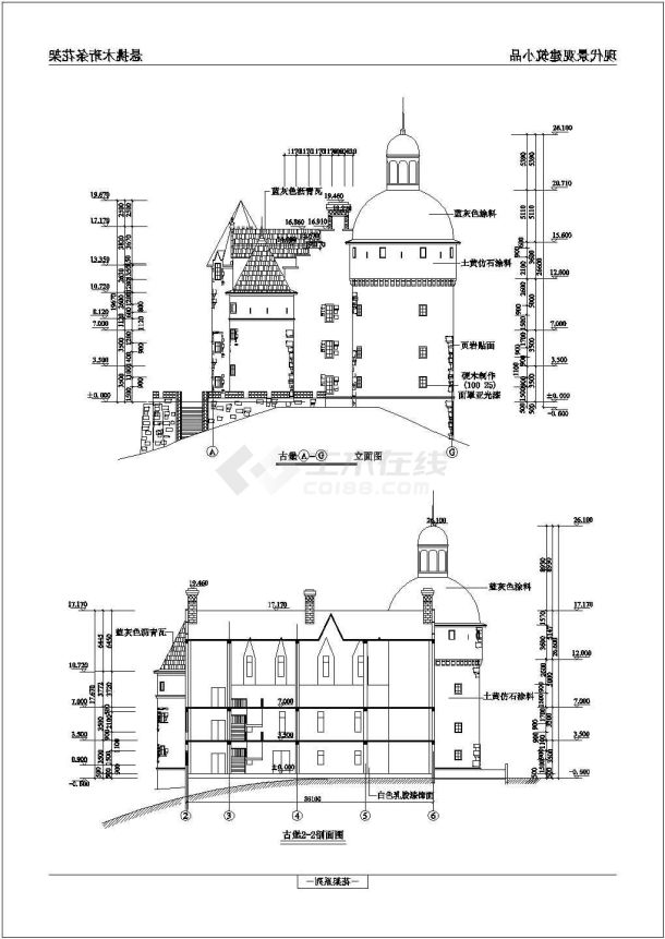 某欧式风格景观古堡设计cad全套建筑施工图
