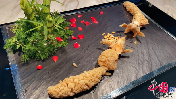 此菜系创新造型菜肴,"玉米"是选用鲈鱼制作,"珍珠"是选用草鱼制作.