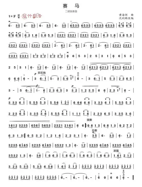 计算机弹歌曲赛马曲谱二胡演奏经典曲目赛马简谱