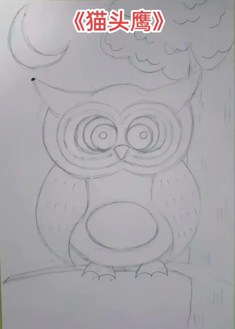 《猫头鹰》#儿童创意美术作品 #可爱小动物绘画教程 #幼儿创 - 抖音