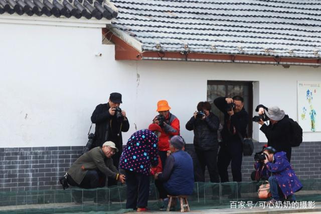 晚宴期间围在垃圾桶附近看热闹的村民.