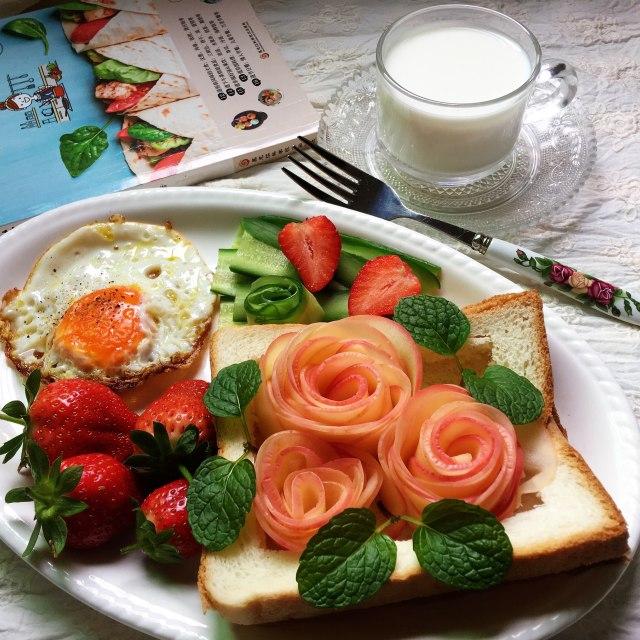 苹果玫瑰花早餐一份营养美味高颜值的早餐